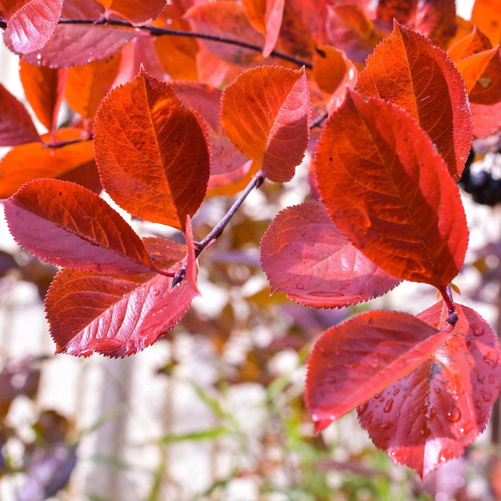 Showy white blossoms in spring and green leaves that turn to an eye-catching shade of dark maroon all summer: The Canadian Red Chokeberry is unlike any other tree available. In the fall, the leaves turn bright shades of red and yellow to stand out as the brightest focal point on the block. And best of all, they deliver a harvest of delectable berries.